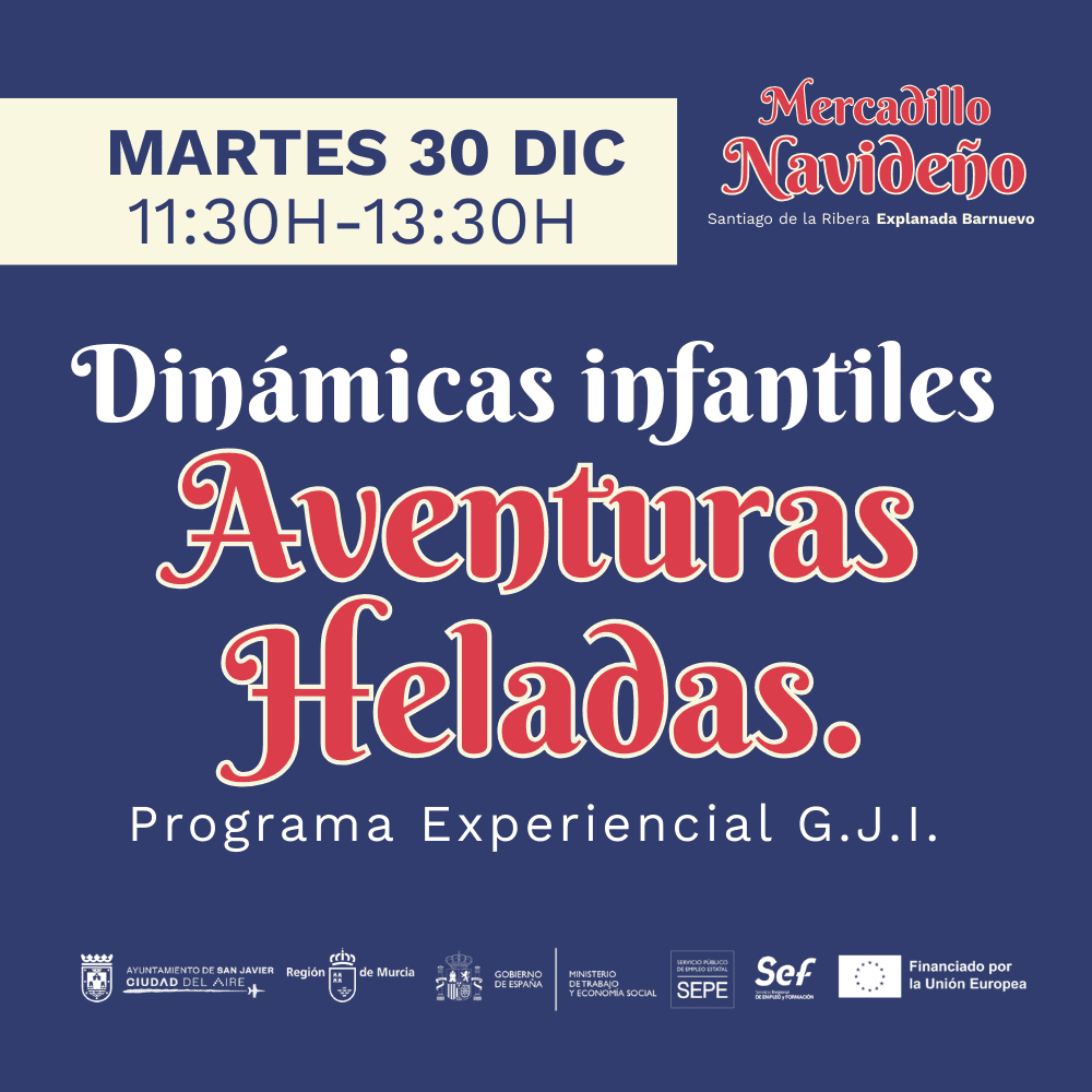Inscripciones abiertas para Aventuras heladasRealiza tu inscripción y los peques podrán sumergirse en un mundo de juegos, movimiento y diversión invernal dentro del Mercadillo Navideño de Santiago de la Ribera.