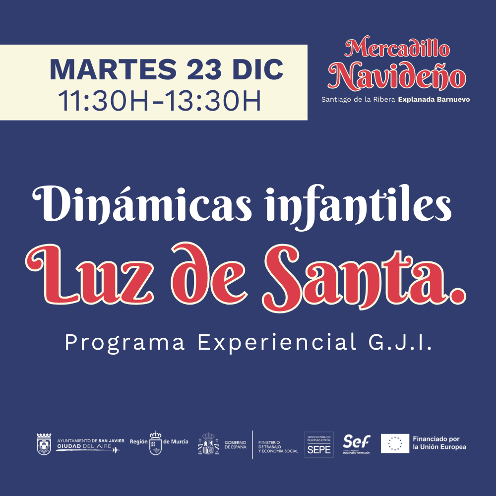 Inscripciones abiertas para Luz de SantaRealiza tu inscripción y disfruta en el Mercadillo Navideño de Santiago de la Ribera de una mañana llena de juegos, movimiento y magia navideña junto al